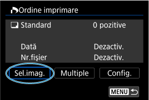 - În continuare, selectaţi [Sel.imag.] sau [Multiple] pentru a specifica imaginile pentru imprimare.