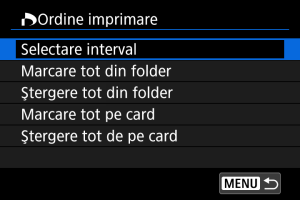 Dacă selectaţi [Ştergere tot de pe card], comanda de imprimare va fi ştearsă pentru toate imaginile de pe card.