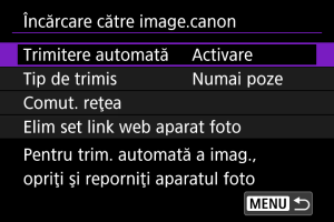 Această secţiune descrie cum să trimiteţi imagini către image.canon.