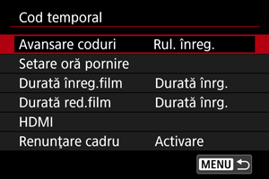 Pentru a seta codul temporal, folosiţi [: Cod temporal].