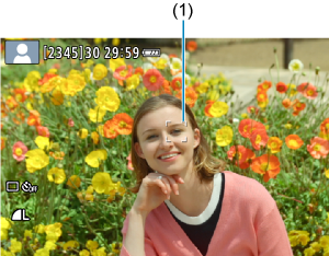 Punctele AF (1) sunt afişate peste feţele sau ochii detectaţi.