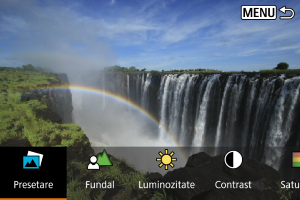 vă va ajuta să obţineţi culori mai intense în natură şi la apusuri. Dacă nu obţineţi culorile dorite, schimbaţi modul de fotografiere la unul din Zona Creativă () şi setaţi stilul foto altfel decât [