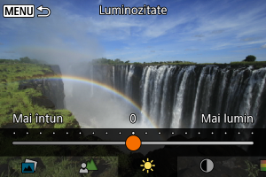 Reglare defocalizare fundal. Alegeţi valori mai mari pentru ca fundalurile să fie mai clare. Alegeţi valori mai mici pentru ca fundalurile să fie mai neclare. [Auto] reglează neclaritatea fundalului pentru a se potrivi luminozităţii. În funcţie de cât de luminos este obiectivul (f/ număr), este posibil ca anumite poziţii să nu fie disponibile.