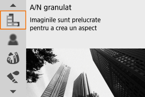 - Cu [A/N granulat], previzualizarea granulată va fi diferită faţă de fotografia finală.