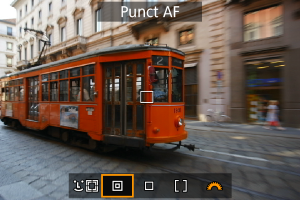 Puteţi seta manual punctul AF sau cadru zonă AF. Aici, sunt folosite ca exemplu ecrane cu AF 1 punct.