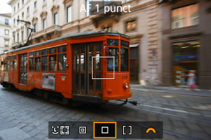 - Punctul AF (1) va fi afişat. Cu AF zonă, cadru zonă AF este afişat.