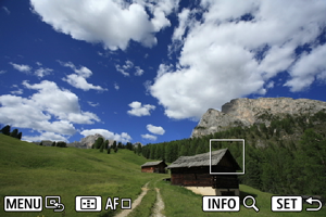 - Pentru a muta punctul AF, apăsaţi butonul