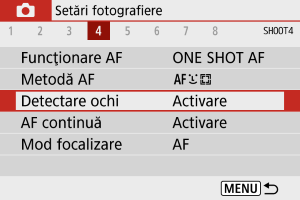- Puteţi schimba setarea [Detectare ochi] dacă apăsaţi butonul