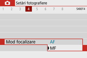 Setaţi comutatorul pentru modul de focalizare al obiectivului la