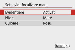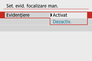 Setări evidenţiere focalizare manuală (Evidenţiere subliniată)