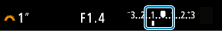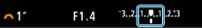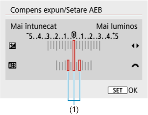 - După setarea intervalului AEB, acesta este afişat pe ecran pe indicatorul pentru nivelul de expunere.