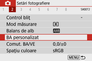 Cu balansul de alb personalizat, puteţi să setaţi manual balansul de alb pentru o anumită sursă de lumină în locul în care fotografiaţi. Efectuaţi această procedură sub sursa de lumină pe care aveţi de gând să o folosiţi.
