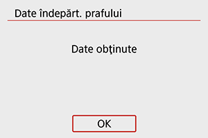 - După ce aţi efectuat fotografia, aparatul va începe să strângă Date îndepărt. prafului. După obţinerea acestor date, va apărea un mesaj.