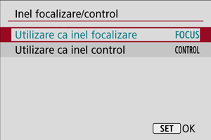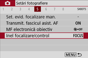 Schimbare din meniu pentru funcţiile inelului de focalizare/control de pe obiectiv.