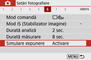 Luminozitatea imaginii afişate va fi asemănătoare cu luminozitatea efectivă (expunerea) a imaginii rezultate. Dacă setaţi compensarea expunerii, luminozitatea imaginii se va modifica în consecinţă.