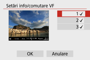pentru a selecta ecranele cu informaţii pe care să le afişaţi în vizor.