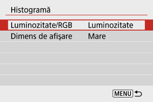 - Selectaţi conţinutul ([Luminozitate] sau [RGB]) şi dimensiunea de afişare ([Mare] sau [Mic]).