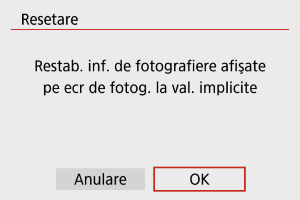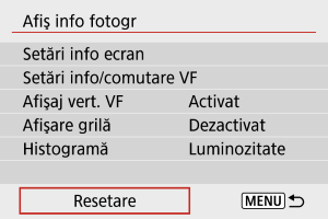 Puteţi personaliza detaliile şi ecranul cu informaţii afişat pe ecran sau în vizor când înregistraţi.