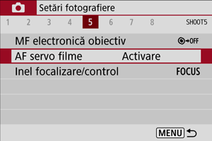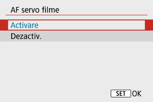 sau efectuaţi alte operaţiuni precum modificarea metodei AF, vor face ca AF servo filme să revină.
