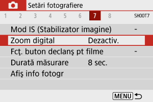 - Pentru a anula zoomul digital, setaţi [Dezactivare] la pasul 2.