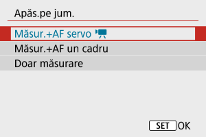 - Dacă [Apăs.pe jum.] este setat la [Măsur.+AF un cadru], este modificat la [Măsur.+AF servo