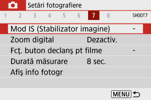 - Când folosiţi un trepied, este recomandat să setaţi IS digital film la [Dezactivare].