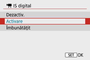 Stabilizarea imaginii cu IS digital film este dezactivată.