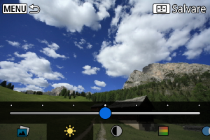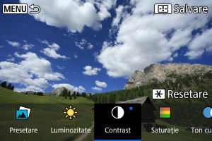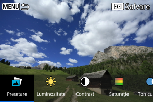 - Puteţi selecta efecte precum [Luminozit.] sau [Contrast] dacă apăsaţi butonul