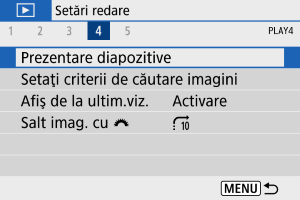 Puteţi reda imaginile de pe card sub forma unei prezentări automate.