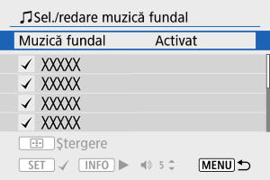 - Setaţi [Muzică fundal] la [Activare].