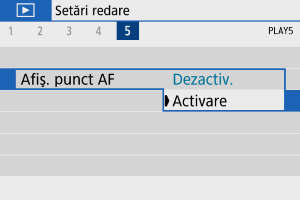 Puteţi afişa punctele AF care au fost folosite pentru focalizare şi acestea vor fi scoase în evidenţă cu roşu în ecranul de redare. Dacă aţi setat selectarea automată a punctului AF, pot apărea mai multe puncte AF.