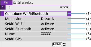 Filă meniuri: Setări wireless