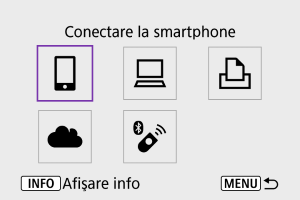 După cuplarea aparatului cu un smartphone cu tehnologie Bluetooth cu consum mic de energie (denumită în continuare “Bluetooth”), aveţi nevoie doar de smartphone pentru a vă conecta prin Wi-Fi.