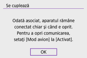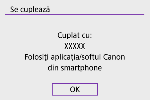 Pentru a cupla cu un alt smartphone după cuplarea cu altul, alegeţi [OK] pe ecranul afişat mai sus.