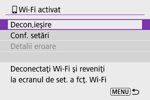Pe ecranul [Wi-Fi activat], selectaţi [Decon,ieşire].