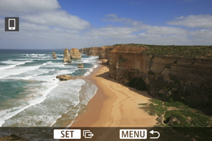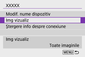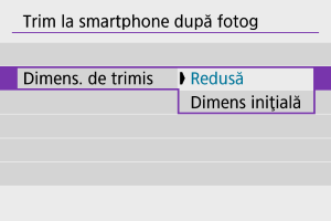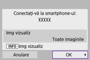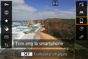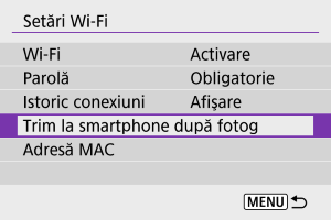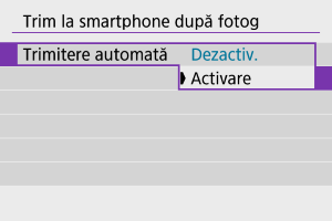Imaginile pot fi trimise automat către un smartphone. Înainte de aceşti paşi, asiguraţi-vă că aparatul şi smartphone-ul sunt conectate prin Wi-Fi.
