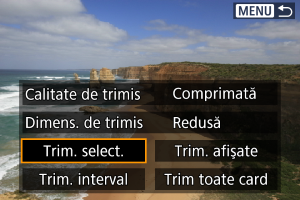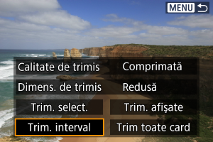 Trimiteţi toate imaginile care se potrivesc criteriilor de căutare setate în [Setaţi criterii de căutare imagini]. Pentru detalii despre [Setaţi criterii de căutare imagini], consultaţi Setaţi criterii de căutare imagini.