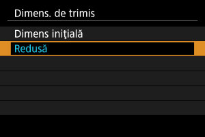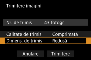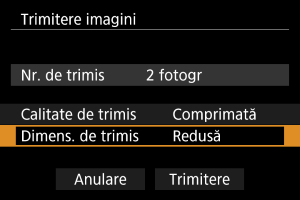 - În [Dimens. de trimis], puteţi selecta dimensiunea de trimitere pentru imagine.