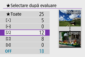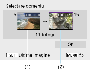 Selectaţi prima şi ultima imagine dintre imaginile aranjate în ordinea numărului fişierului pentru a specifica imaginile care pot fi vizualizate.