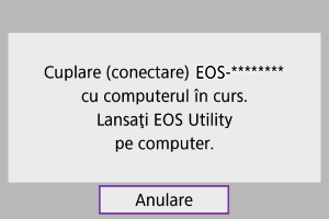 - După stabilirea conexiunii Wi-Fi la EOS Utility, anumite funcţii nu sunt disponibile.