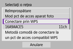 Selectaţi [Conectare prin WPS].