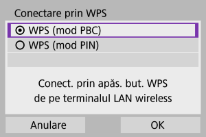 Selectaţi [WPS (mod PBC)].