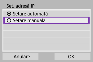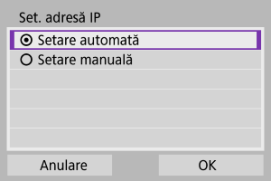 - Dacă apare o eroare cu [Setare autom.], consultaţi Setarea adresei IP manual.