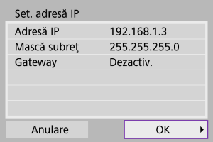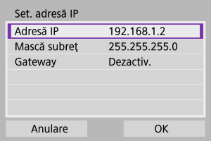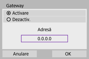 - Pentru a folosi un gateway, selectaţi [Activare], apoi selectaţi [Adresă].