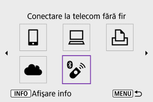 Acest aparat poate fi conectat la telecomanda wireless BR-E1 (comercializată separat, ) prin Bluetooth pentru fotografiere de la distanţă.