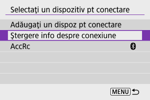 Înainte de cuplarea cu altă telecomandă BR-E1, ştergeţi informaţiile despre telecomanda conectată.