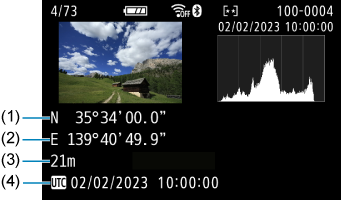 Puteţi verifica informaţiile despre locaţie adăugate imaginilor în ecranul cu informaţii despre fotografiere ().