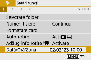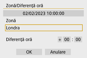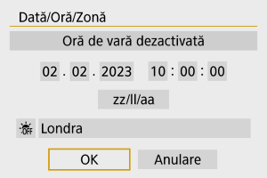 - După ce modificaţi [Zonă/Diferenţă oră], verificaţi dacă aţi setat data/ora corecte.