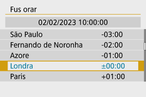 pentru a selecta opţiunea [Diferenţă oră] (+/–/oră/minute), apoi apăsaţi butonul