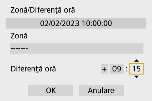 , apoi diferenţa de la UTC în [Diferenţă oră].
